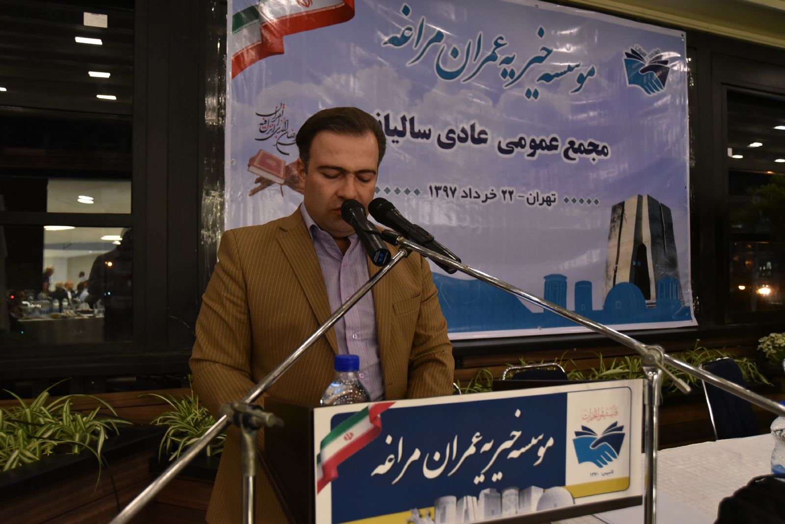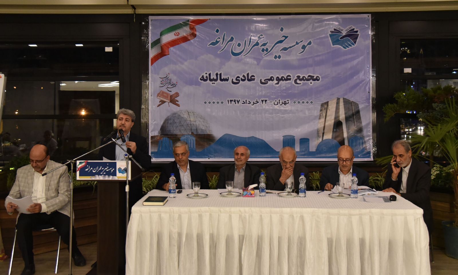 به گزارش روابط عمومی موسسه خیریه عمران مراغه ، مجمع عمومی سالانه موسسه خیریه عمران مراغه با حضور شخصیتهای سیاسی ، اجتماعی ، علمی و دانشگاهی و اعضای این موسسه در مجتمع اداری و تجاری رویال تهران برگزار شد.