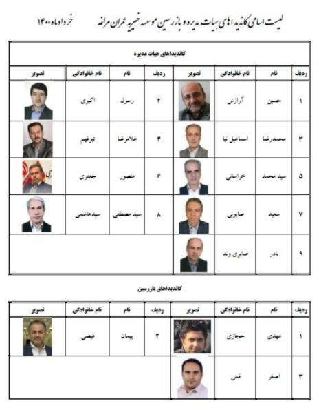 هیات مدیره موسسه خیریه عمران مراغه
