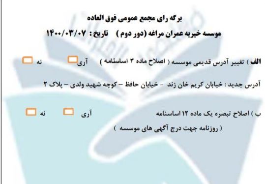 اعضای محترم وگرامی موسسه خیریه عمران مراغه.