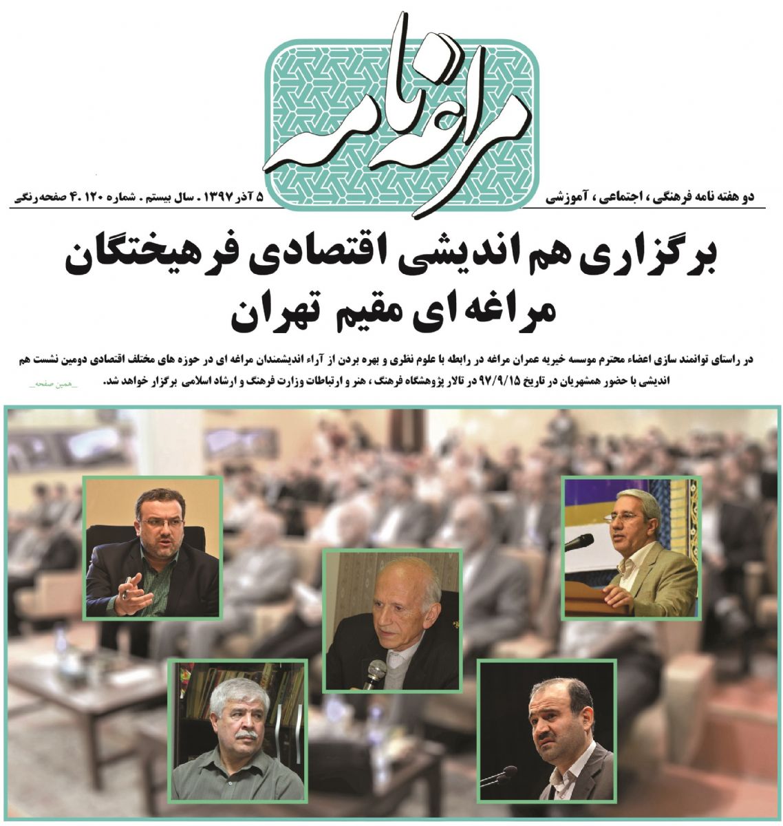 جلسه هم اندیشی اقتصادی موسسه خیریه عمران مراغه با حضور شخصیت های علمی و اقتصادی و موضوع " پسا تحریم " پنجشنبه ۱۵ آذر ساعت ۱۵ در تالار اختصاصی پژوهشگاه فرهنگ وهنرو ارتباطات وزارت فرهنگ وارشاد اسلامی برگزار شد .